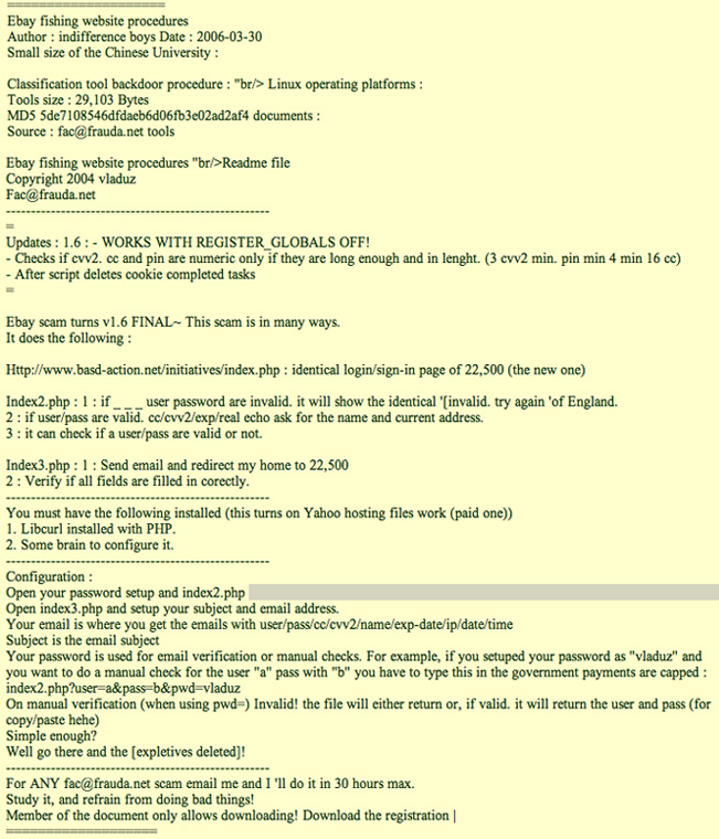 to several ebaY users. This tool allows a scammer to access ALL user info through